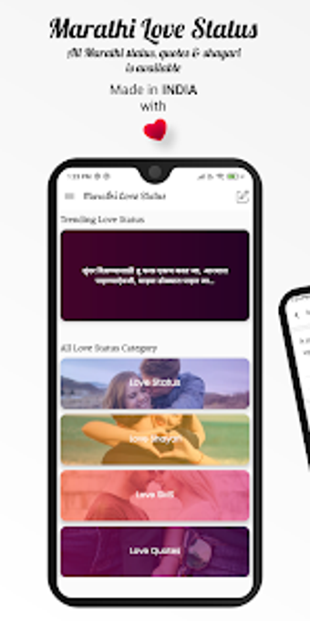 이 앱은 사용자가 마라티어 사랑 상태, 마라티어 사랑 샤이어리, SMS 및 인용구와 같은 다양한 카테고리를 탐색할 수 있는 사용하기 쉬운 인터페이스를 제공합니다. 인터넷 연결 없이 작동하여 사용자가 언제 어디서나 콘텐츠에 액세스할 수 있습니다.